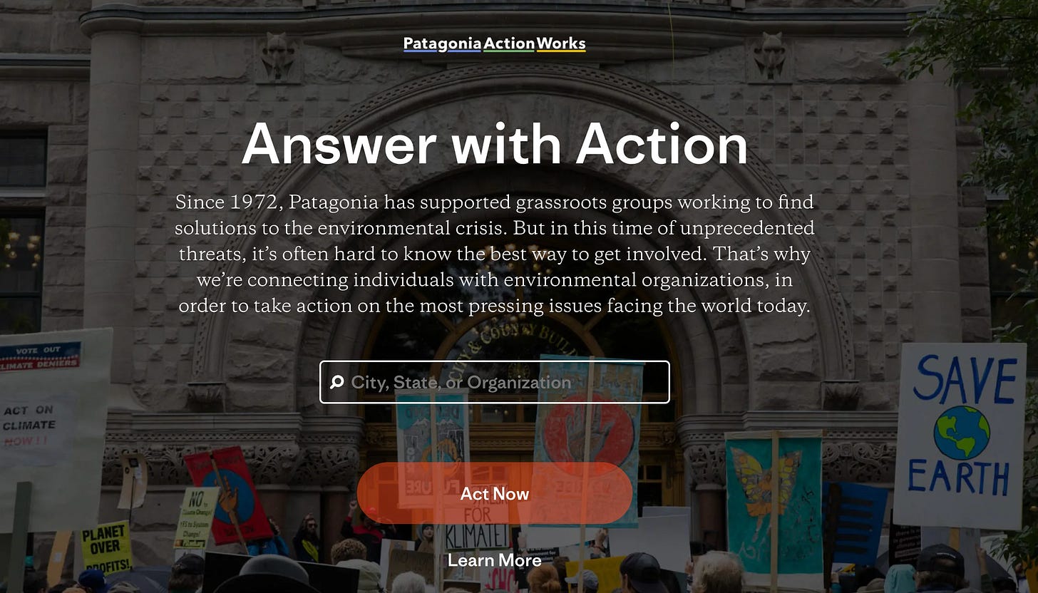 On the Patagonia Action Works site you could have a simple sign up form for people to put in their contact details if they are interested in joining. Those people would all then get the follow up information for the trainings happening closest to them. Patagonia could even employ phone bankers so that within 24 hours - every single person who signs up on the website gets a phone call giving them more information and a clear next step for what to do to involve themselves further.