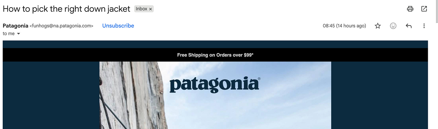 I don’t have a huge grasp on American politics and all the different organising efforts that are going on right now. I don’t have the inside information on what Patagonia is funding and has planned this year. Who knows - maybe they are doing all the things I am going to suggest in this article. But my hunch is that this is not the case. I am on their email list. For the past few weeks I have been waiting for an email from them with a clear call to action for how to get involved in the resistance to all that is going on right now. Have I received one? No, I just got another email telling me how to pick the right down jacket.